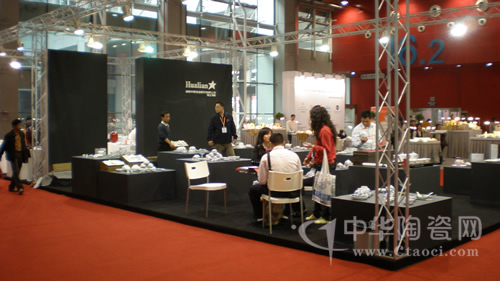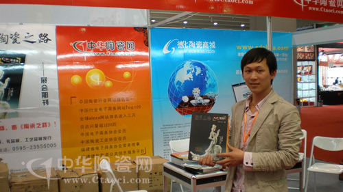 中華陶瓷網(wǎng)工作人員向現(xiàn)場客商發(fā)放陶瓷之路雜志,中華陶瓷網(wǎng)宣傳資料