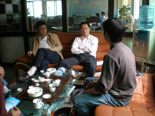4月23日,泉州市科技局黨組成員、紀(jì)檢組長(zhǎng)——陳嘉祐與德化縣科技局局長(zhǎng)蘇志堅(jiān)等,到中華陶瓷網(wǎng)視察工作,總經(jīng)理柯維太向泉州市科技局領(lǐng)導(dǎo)及德化科技局局長(zhǎng)介紹了中華陶瓷網(wǎng)運(yùn)營(yíng)情況,并介紹旗下平臺(tái)中華陶瓷網(wǎng)、《陶瓷之路》、中國(guó)瓷都德化、德化陶瓷商城四大平臺(tái)情況,當(dāng)陳嘉祐得知中華陶瓷網(wǎng)日前獲得“中國(guó)行業(yè)電子商務(wù)網(wǎng)站100強(qiáng)”后,對(duì)中華陶瓷網(wǎng)的工作表示肯定。