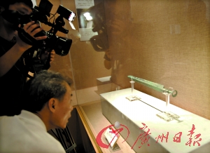 作為啟動儀式的一部分,朱小丹和鄭欣淼參觀了“愛我博物館——廣州博物館館藏捐贈文物特展”和“廣州海上絲綢之路考古發(fā)現(xiàn)特展”。參觀時,朱小丹仔細(xì)聆聽介紹,并不時詢問。在聽到廣州博物館收藏有1.7萬多件捐贈文物時,朱小丹高興地說,文物捐贈是博物館收集文物的一個重要途徑,廣州民間收藏很豐富,要發(fā)動群眾、依靠群眾,努力收集更多的文物,讓廣州的歷史文脈更清晰更豐滿。在古外貿(mào)瓷器、刻有外國人頭像的象牙印章和黃埔古港、十三行商鋪建筑通草畫等文物面前,朱小丹轉(zhuǎn)身對博物館負(fù)責(zé)人說,收集到這么多珍貴的文物,要感謝廣大群眾、國際友人的支持,也離不開博物館工作人員和廣大考古工作人員的辛勤勞動,希望再接再厲,進(jìn)一步挖掘文物中蘊(yùn)含的歷史文化內(nèi)涵,把廣州作為嶺南文化中心地、海上絲綢之路發(fā)祥地、近現(xiàn)代中國革命策源地和改革開放先行地的特色和地位充分展現(xiàn)出來。在孫中山“志在沖天”的手書橫幅和廣州起義革命者所用的紅袖帶展柜前,朱小丹靜靜地駐足凝視片刻。臨走出展廳時,朱小丹拉著考古專家麥英豪的手說,剛才看過的文物都很珍貴,其實(shí)您這樣的專家也是廣州的珍貴財(cái)富,您要多保重身體,同時請放心,廣州市委市政府高度重視文化事業(yè),一定會規(guī)劃建設(shè)好廣州新博物館,使之成為展示城市歷史文化內(nèi)涵的最好載體。