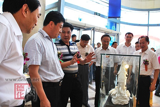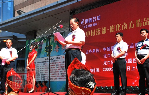 縣委常委、宣傳部部長涂健圻、縣政府副調(diào)研員黃發(fā)建、煙臺龍口市副市長呂常厚等出席“中國瓷都·德化”——南方精品煙臺營銷中心授牌儀式,涂健圻向營銷中心授牌、黃發(fā)建在授牌儀式上致辭,并為南方精品煙臺營銷中心剪彩、授牌儀式上德化縣與龍口市還互贈了禮品。龍口市電視臺、《今日龍口》報就當(dāng)天的授牌儀式進(jìn)行了報道。
