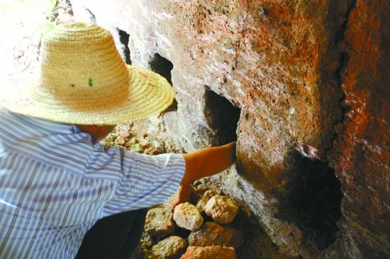貓身鉆進窯洞,首先感到一陣清涼。窯洞呈半橢圓形,長約6米,寬約3米,最高處約6米,是用一塊塊巨大的青磚壘成,呈螺旋狀,非常有特色。窯前分布著15個通火孔,四周是一層厚厚的窯漢,堅硬異常。