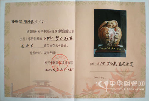 《陀夢》福建中國閩臺緣博物館收藏證書