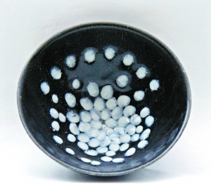 專家介紹說,建窯黑釉盞的特征一是胎含鐵量高,一向有“鐵胎”之稱,胎體厚重,呈黑灰色、紫黑色,胎質(zhì)粗糙堅硬,露胎處色沉而無光。建窯出產(chǎn)的黑釉瓷產(chǎn)品主要有曜變,金兔毫、銀兔毫、油滴、鷓鴣斑紋為主,這些斑紋,人工無法控制,它既依靠釉料配方的變化,又依托窯內(nèi)燒成溫度與氣氛的不同而產(chǎn)生不同的紋理,往往產(chǎn)生意外的效果,因此具有無窮的藝術(shù)魄力,似為“鬼斧神工”之作,具有很高的欣賞價值。其中曜變斑紋由于紋斑光彩奪目,異常絢麗,在建盞中最為珍貴。目前日本所藏的幾件聞名世界國寶級的“曜變”天目盞,就是我國建窯的產(chǎn)品。兩宋時期,朝野上下興盛“斗茶”之風(fēng),黑釉器形制以碗為主的建盞備受垂青,建盞的特點最適合斗茶。首先建盞的外觀具有典型的民族風(fēng)格和濃郁的東方藝術(shù)色彩,變幻莫測、絢爛多彩的窯變釉給人以奇特的美感。建盞造型別致,口大腹深,沿薄底厚,胎質(zhì)粗硬,具有良好的保溫性。