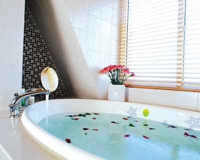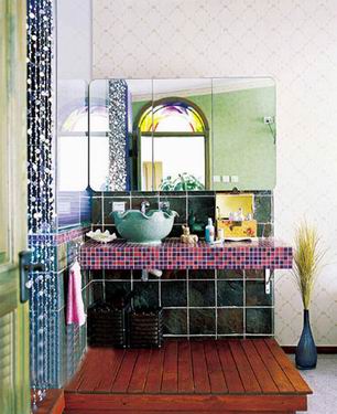 圖解:二:半開放式風(fēng)情浴室 巧妙利用百葉、珠簾等軟隔斷將空間進行一次分隔,開“開放”的基調(diào)上制造“私密”,給自己一個靈活的選擇。 1、格局要素:衛(wèi)浴間矮墻隔斷巧妙分隔空間。 2、材質(zhì)要素:亮片珠簾為衛(wèi)浴間營造嫵媚浪漫。 3、器物要素:衛(wèi)浴間外的洗手池使用很方便。