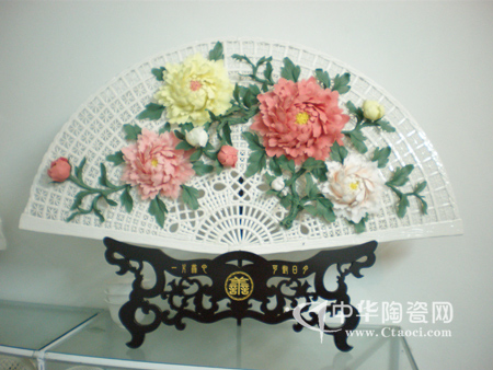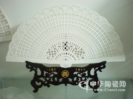 源何有制瓷扇的念頭?她說:“在一次與朋友的聊天中,偶然聊到中國傳統(tǒng)的扇,材料有竹、木、紙、扇、象牙、飛禽翎毛等,各式各樣……”她突發(fā)奇想,何不做把瓷扇!想到、說到、做到,鄭麗玲回家后立馬行動(dòng),開始構(gòu)思如何用陶瓷做扇。功夫不負(fù)有心人,經(jīng)過幾天的努力,第一把瓷扇終于出世。她說:“雖然自己對(duì)瓷條編織手藝非常熟悉,但用瓷條來編扇面,卻不容易,坯體不能動(dòng),一被風(fēng)吹,就很容易干裂,而扇面薄,裂了就難以修復(fù)。”她說時(shí)臉上洋溢的笑容可以感知她對(duì)自己作品的喜愛及背后付出的汗水。