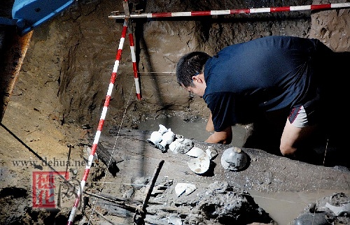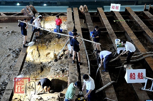 廣州,2009年9月26日 “南海Ⅰ號(hào)”考古發(fā)掘 部分文物露真容 9月26日,考古工作人員正在發(fā)掘“南海Ⅰ號(hào)”。 當(dāng)日,入住“水晶宮”兩年的南宋沉船“南海Ⅰ號(hào)”第一階段試掘工作結(jié)束。記者從考古現(xiàn)場(chǎng)了解到,考古人員在“南海Ⅰ號(hào)”上發(fā)現(xiàn)了保存完好的船艙、船舷和上甲板,并出水了200多件來自江西景德鎮(zhèn)和福建德化等地民窯的精美瓷器。