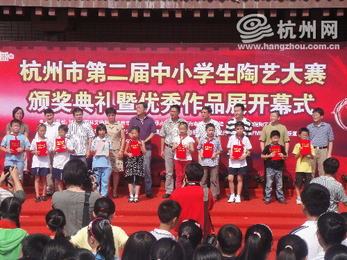 2009年9月25日上午,“塑我中華風采”杭州市第二屆中小學生陶藝大賽成功落下帷幕,頒獎典禮暨優(yōu)秀作品展開幕式在杭州南宋官窯博物館舉行。杭州市園文局副局長王宏偉、是文明辦未成年處處長康志友、市教育局宣傳處處長張志龍等相關(guān)領(lǐng)導以及獲獎師生出席了本次頒獎典禮。