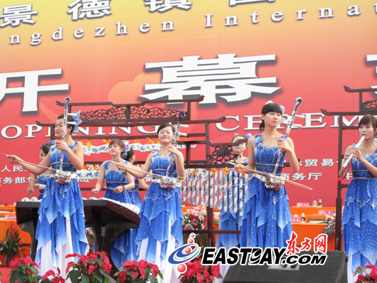 東方網(wǎng)記者王麗琳10月18日?qǐng)?bào)道:金秋十月,丹桂飄香。150萬(wàn)瓷都人民迎來了2009中國(guó)?景德鎮(zhèn)國(guó)際陶瓷博覽會(huì)。18日上午9時(shí)48分,在中國(guó)陶瓷博物館廣場(chǎng)上,2009中國(guó)?景德鎮(zhèn)國(guó)際陶瓷博覽會(huì)開幕式正式拉開帷幕。