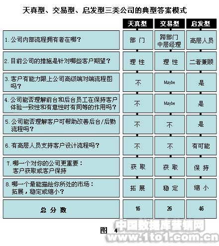 ★ 圖4詮釋出天真型、交易型、啟發(fā)型三類公司的典型答案模式。