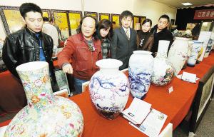 10月31日,“景德鎮(zhèn)陶瓷藝術(shù)全國巡回展”(天津站)開幕,展會現(xiàn)場 展示了形象逼真的陶瓷桑葉與蠶、陶瓷樹樁、婉約細(xì)膩的陶瓷梅蘭竹菊……件件精美獨特,其中首次來津展示的“九龍壁”受到各界人士的關(guān)注,F(xiàn)場還進行了白瓷板和白盤的手工繪畫、燒制,讓津門百姓大飽眼福。