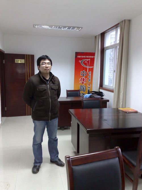 中華陶瓷網(wǎng)駐景德鎮(zhèn)辦事處一角(圖中:中華陶瓷網(wǎng)副總經(jīng)理蘇世偉)