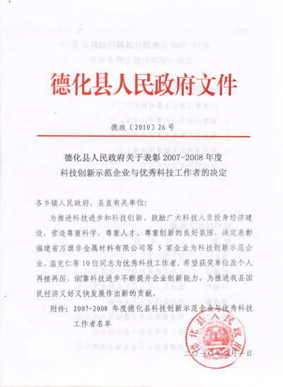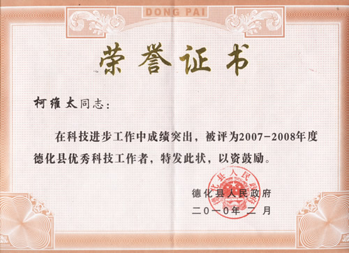 近日,中華陶瓷網(wǎng)、泉州市網(wǎng)興網(wǎng)絡科技有限公司總經(jīng)理——柯維太,被德化縣人民政府評為2007-2008年度德化縣優(yōu)秀科技工作者。