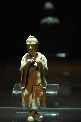 圖為展出的南宋青白釉雕瓷人像(10月2日攝)。