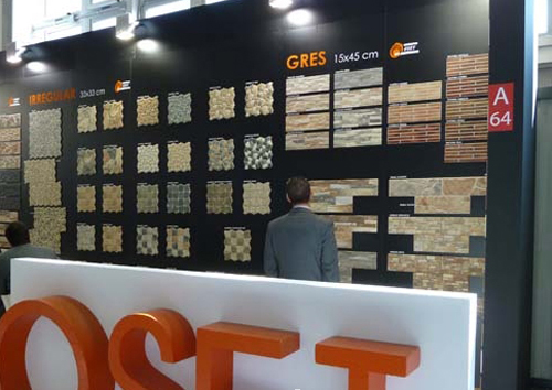 上一屆的博洛尼亞展的產(chǎn)品主要以仿古磚、瓷片為主流,而本屆展會(huì)的參展產(chǎn)品有所變化,大量的仿石材、仿天然石的登臺(tái)亮相,成為這次展會(huì)的主流展品。