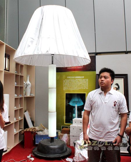 陶瓷臺(tái)燈的生產(chǎn)難度很大,需要在厚度僅為1。5毫米左右的薄胎上面做雕刻、填釉和裝飾的工作。此臺(tái)燈高達(dá)3.5米,匯聚了多種陶瓷工藝手法和技藝,例如半刀泥、秘色釉等,整件作品立意新穎,晶瑩剔透,做工細(xì)致,精美絕倫,是一件不可不得陶瓷藝術(shù)作品。