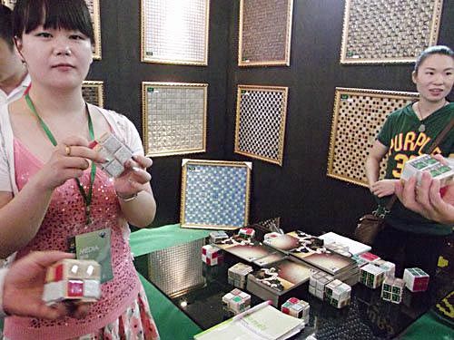 商家將馬賽克做成魔方,既新穎又方便客商觀(guān)看。楊洪攝