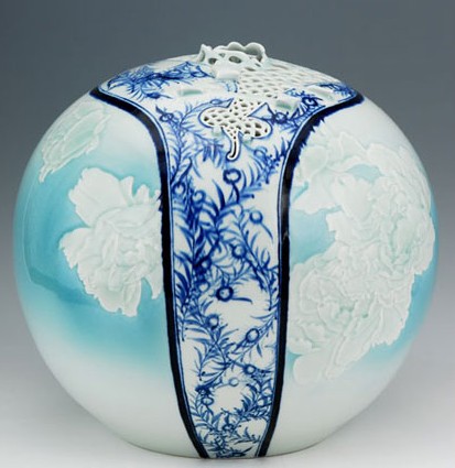 江西省工藝美術(shù)大師熊國輝,潛心研究陶瓷雕塑、陶藝、陳設(shè)藝術(shù)瓷等三大類技術(shù),孜孜以求,不斷創(chuàng)新。他的作品題材廣泛,意境深刻,追求造型的樸實(shí)美。1996年由他研創(chuàng)的陶瓷珍珠釉水墨畫瓷系列作品,風(fēng)格高雅尊貴、清新賞目,獨(dú)樹一幟。在陶瓷珍珠釉的胚胎上以清花顏料彩繪,吸收了中國傳統(tǒng)的水墨畫技法,作品一氣呵成。流暢奔放的線條,酣暢淋漓的潑墨技法,隨意點(diǎn)(查看地圖)染的筆觸,顯示出畫面絢麗明快的裝飾效果。他的作品深的海內(nèi)外收藏家喜愛,有些已成為不可多得的藝術(shù)佳品。