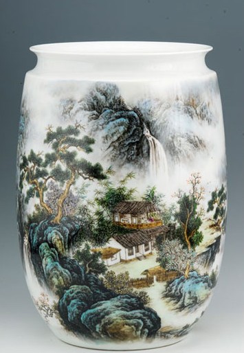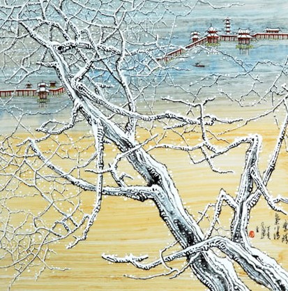 光影青花藝術(shù)創(chuàng)始人汪吟泉的青花山水, 在傳統(tǒng)的青花畫法上吸取西洋畫的光影透視, 以其“釉下填白光影青花”技法, 創(chuàng)作出“雪”,“雨”, “夜”三景, 開創(chuàng)了一個青花繪畫新樣種,受到廣大藏家的歡迎。
