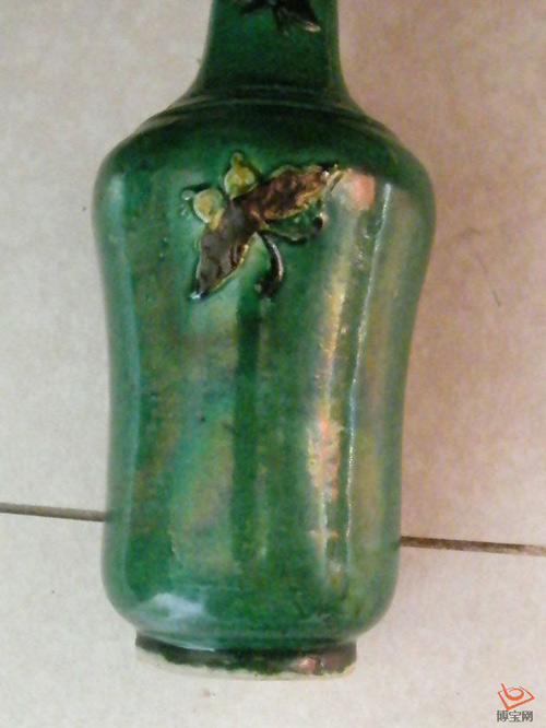 一、因其通體“蛤蜊光”均勻,藍(lán)彩周圍“蛤蜊光”尤甚;二、自然舊貌劃痕、光澤不自然;三、人物面部畫(huà)得端正;四、底無(wú)明顯的旋紋痕和“黑疵點(diǎn)”;五、瓶?jī)?nèi)壁“包漿”不對(duì)頭。