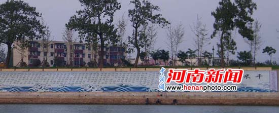“千米九龍壁”景觀位于漯河市郾城區(qū)鎮(zhèn)河鐵牛處的河堤內(nèi)側(cè),西起107國道沙河大橋,往東延綿千余米,由3萬多塊瓷磚拼貼組合,面積約6000平方米,壁畫中形態(tài)各異的九條龍呈現(xiàn)于水天之間,象征著團結凝聚、奮發(fā)開拓、天地和諧的龍的精神,是迄今為止世界上規(guī)模最大的陶瓷九龍壁畫。 (馬艷梅 中新社河南分社發(fā) 特邀攝影師 徐琳瑯 攝)
