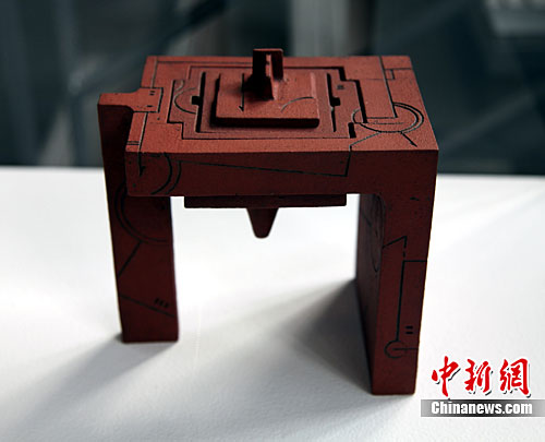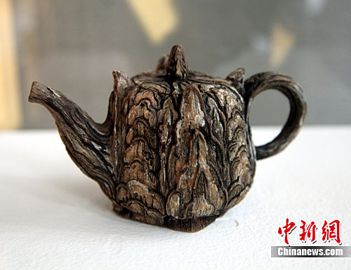 11月2日,第三屆臺(tái)灣金壺獎(jiǎng)陶藝設(shè)計(jì)競(jìng)賽展近日在臺(tái)北縣鶯歌鎮(zhèn)陶瓷博物館開幕。圖為展出的銅獎(jiǎng)茶壺。中新社記者 陳立宇 攝