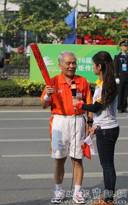 劉老在火炬護(hù)送隊(duì)員下跑步前進(jìn)