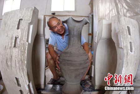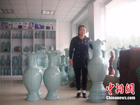 “這8件荷葉口瓶全部出爐,我總算松了一口氣!”昨日下午,榮華汝瓷廠總工程師韓琴在自己的展廳,手撫1米多高的汝瓷瓶高興地告訴筆者。