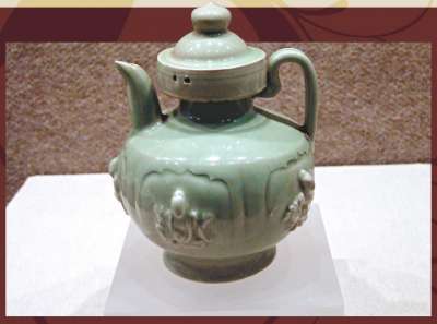 圖:青瓷貼花俳優(yōu)執(zhí)壺