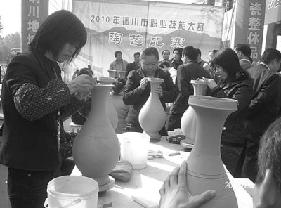為了進(jìn)一步弘揚(yáng)地域文化,打造和宣傳耀州陶瓷的整體品牌,使優(yōu)秀陶瓷技能人才脫穎而出,激勵和引導(dǎo)廣大陶瓷職工鉆研技術(shù),11月10日上午,在著名的耀州瓷發(fā)源地——銅川市耀州區(qū)董家河鎮(zhèn)舉辦了一次別開生面的“銅川市職業(yè)技能大賽陶藝比賽”。(記者 吳穹 張紅娟)