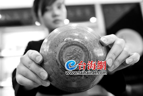 導報記者昨日提前看到了兩款展品,一個是“建窯兔毫黑釉盞”,另一個是“建窯黑釉供御款束口盞”。兩款都屬于建窯黑釉的頂級珍品,花紋都是在燒制過程中天然形成的,非常奇妙,其中的“供御款”(如圖)還是當時進貢的貢品,據傳,宋徽宗就偏愛建窯黑釉,專門用黑釉茶盞品茶斗茶,因而皇室也都紛紛流行黑釉盞。因而,這兩款分別估價50萬元。(記者 香卉輝/文 吳曉平/圖)