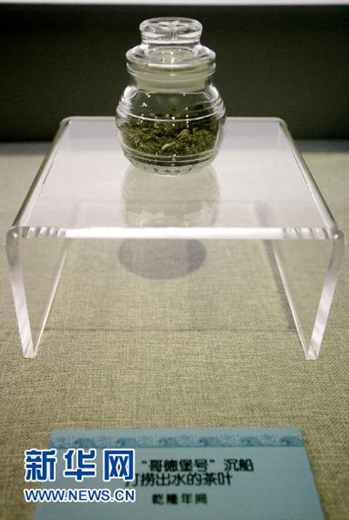 11月16日,清乾隆時期瑞典“哥德堡號”沉船打撈出水的茶葉在新疆博物館展出。
