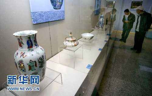 11月16日,參觀者在參觀展出的文物。當(dāng)日,從廣州博物館引進(jìn)的《海貿(mào)遺珍———古代廣州外銷藝術(shù)品展》在新疆博物館亮相。這次展出的99件(套)文物是十八、十九世紀(jì)海路貿(mào)易的外銷商品或舶來品,包括陶瓷、絲綢、珠飾、象牙雕刻制品等。此次展出將持續(xù)到2011年2月。