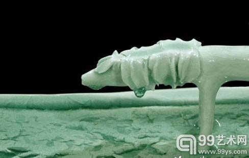 朱樂耕作品“天馬”是一件富有韻味的作品,也是一件有故事的作品。這件作品是以玉一般的青瓷材料構(gòu)成的,一匹瘦勁而晶瑩如玉的“天馬”停立在一片如碧透的云海,如清澈的湖泊。朱樂耕采用剔透溫潤的影青釉,并在傳統(tǒng)的基礎(chǔ)上進行改革,強調(diào)材料的透明性和流動性,同時保持泥土的天然肌埋特征,在積釉深厚的地方,色澤青如翠玉,釉質(zhì)稍薄的地方,清淡如白云。整個作品渾然一體,,體現(xiàn)了東方人所追求的意境和審美趣味。朱樂耕喜愛影青釉,但朱樂耕并沒有完全使用傳統(tǒng)的釉質(zhì),而是突出了其特點,任其流動性更大,更透明,更溫潤,更厚重如凝脂。