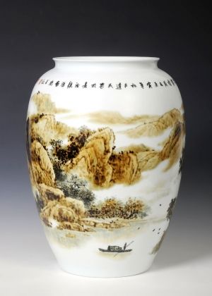 胡達(dá)民自幼酷愛繪畫,對那晶瑩剔透的白色世界有著特別的鐘愛,擅長釉上新彩、粉彩、釉下青花山水。作品構(gòu)圖新穎多變、疏密結(jié)合、取材廣泛,枯藤老樹、小橋流水、亭臺茅舍、江南秀色、水鄉(xiāng)、雪景……或工或?qū),工筆中但見點(diǎn)點(diǎn)線線,細(xì)膩而不繁瑣、清爽自然;寫意中線面結(jié)合,釉下青花有著宣紙上的濕潤與飛白筆觸,也有彩染的虛實(shí)效果。其山水畫作品畫中有詩,常以枯藤老樹、千峰競秀、云霧橫流、山勢磅礴、吞吐萬象的全景表達(dá)出一種廣闊的意境和作者豐富的情感世界。作品深邃的靜美和氣勢恢宏的景觀,常給人一種強(qiáng)悍的感染力和無限的遐想。