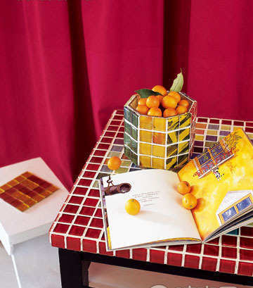 桌面是平的,常見(jiàn)的形狀是方或者圓,用拼貼墻面的方法拼貼桌面,應(yīng)該不是很難的事。不用敲碎,因?yàn)槊娣e比較大,可以自由設(shè)計(jì)圖案,或者干脆就放滿桌的數(shù)字或者字母,如果是餐桌,就一定要選增加食欲的鮮艷顏色。玻璃馬賽克使桌面顯得干凈透亮,也很好清理。