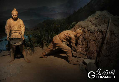 圖為龍泉青瓷博物館里展示古代青瓷工匠取土?xí)r的場(chǎng)景。記者 楊慧峰攝