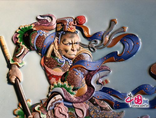 中國(guó)收藏2010十大藝術(shù)陶瓷名品展上的精美作品。瓷板畫-《齊天大圣》局部(博夢(mèng)堂 攝影報(bào)道)