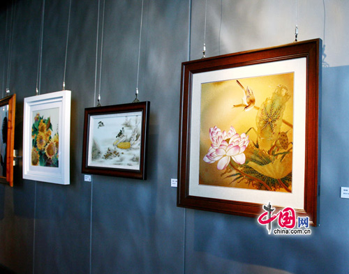 中國(guó)收藏2010十大藝術(shù)陶瓷名品展上的精美作品。瓷板畫(博夢(mèng)堂 攝影報(bào)道)