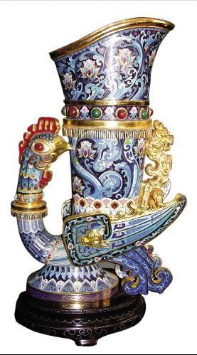 景泰藍(lán)從它出現(xiàn)起就屬宮廷專用,是紫禁皇城的珍品,長期以來民間幾乎看不到。部分流出清宮的景泰藍(lán)近年來在拍賣市場(chǎng)屢創(chuàng)天價(jià)。去年,香港蘇富比拍賣行一件乾隆年制的“海水云龍圖八方瓶”以700萬港元拍出,乾隆年制的銅胎掐絲琺瑯“春壽寶盒”更拍出1150萬港元的天價(jià)。