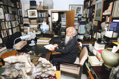 他今年八十有二,仍然堅持著書立說;他須發(fā)皆白,依舊流連于古玩市場與書攤;他學(xué)識淵博,仍時刻不忘讀史、研究……他的生活很平淡,卻無時無刻不散發(fā)著藝術(shù)光彩。