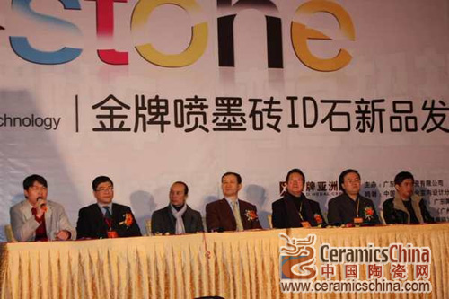 2011年1月12日,廣東金牌陶瓷有限公司在廣州碧桂園鳳凰城酒店舉行金牌噴墨磚ID石新品“ID—STONE”發(fā)布會(huì)暨2011經(jīng)銷商年會(huì)。中國建筑衛(wèi)生陶瓷協(xié)會(huì)會(huì)長(zhǎng)葉向陽、中國建筑學(xué)會(huì)室內(nèi)設(shè)計(jì)分會(huì)副會(huì)長(zhǎng)勞智權(quán)、西班牙原創(chuàng)噴墨設(shè)計(jì)師Danel等嘉賓,與廣東金牌陶瓷有限公司生產(chǎn)總經(jīng)理梁志啟、營銷總監(jiān)冼潤林,金牌亞洲陶瓷營銷總經(jīng)理羅良照,和來自全國各地的300多位經(jīng)銷商共聚一堂,一起見證具有革命性創(chuàng)新和前瞻性環(huán)保理念的“ID—STONE”新品的閃耀面世。