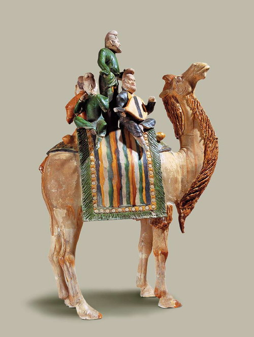 唐三彩駱駝載樂俑。