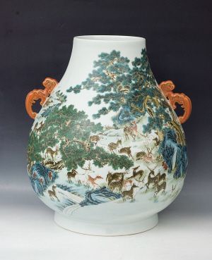 ▲清乾隆粉彩“百鹿圖”雙耳尊