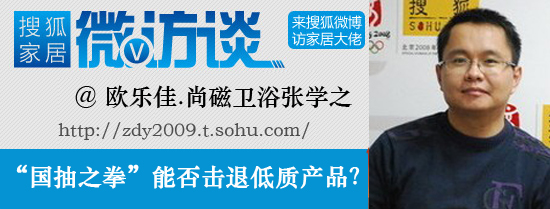 近幾年隨著房價問題日益嚴(yán)峻,“住”已成為最突出的民生熱點,如何讓百姓不但住得起而且住得好,成為了與廣大群眾利益攸關(guān)的話題。作為房地產(chǎn)下游行業(yè)的陶瓷衛(wèi)浴行業(yè),與人們居住質(zhì)量息息相關(guān)。隨著“3.15”的到來,記者就消費者關(guān)心的產(chǎn)品質(zhì)量和價格問題,通過搜狐微博在線采訪了歐樂佳.尚磁衛(wèi)浴營銷副總裁張學(xué)之。期間,不少“微友”也就討論問題參與到討論當(dāng)中,分享了他們的觀點。
