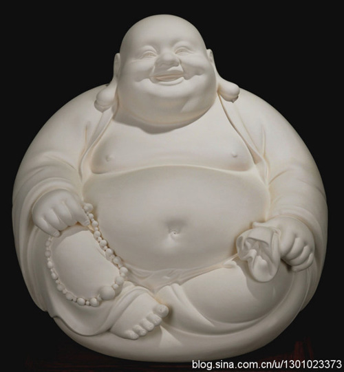 他的“手把藝術(shù)瓷”的開(kāi)發(fā)理念是:現(xiàn)代人工作忙,生存壓力大,人人都需要并喜歡能帶來(lái)身心愉悅的把玩小品,而《開(kāi)心彌勒》正好能能滿足人們的這種心理需求。首先,彌勒佛豁達(dá),超脫,大肚能容、開(kāi)口便笑,能讓人相見(jiàn)愉悅,身心放松;其次,彌勒佛融匯福、祿、壽、喜諸多意蘊(yùn),寄寓著人們的美好生活期望;而用獨(dú)具魅力的德化白瓷將之塑造得一團(tuán)和氣,則捧在手上沉旬旬的(接近實(shí)心)可玩,放于臺(tái)案能自在搖晃;此外,白瓷若不上釉則具一定吸水率,可灑上香水增其味,若放微波爐里轉(zhuǎn)一兩分鐘,又可添其溫。你看,一件小小瓷藝品,能捧著暖,摸著滑,搖著動(dòng),聞著香,還令人可賞,可樂(lè),可思,可悟,誰(shuí)會(huì)不喜歡呢?