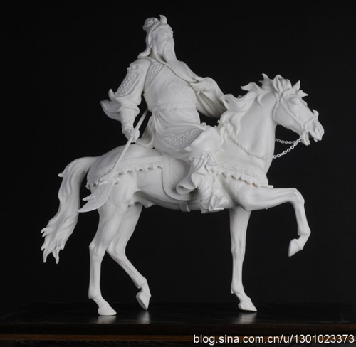 林建全創(chuàng)作的瓷塑《千里走單騎》
