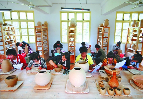6年前,龍泉中等職業(yè)學(xué)校、龍泉市高級職業(yè)學(xué)校和龍泉進(jìn)修學(xué)校三校合并,改擴(kuò)建為一所上規(guī)模的青瓷專業(yè)特色職校。學(xué)校投資300萬元,建成了占地15畝的陶瓷工藝實(shí)訓(xùn)基地,從設(shè)計(jì)到制作、從修坯到上釉、從素?zé)綗,?ldquo;一條龍”完成。