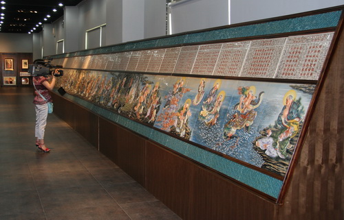 5月12日,位于龍城街道五聯(lián)社區(qū)的的深圳陶瓷文化產(chǎn)業(yè)園順利開幕,記者在產(chǎn)業(yè)園內(nèi)欣賞到目前世界上最長(zhǎng)的高溫陶瓷浮雕壁畫“五百羅漢圖”。