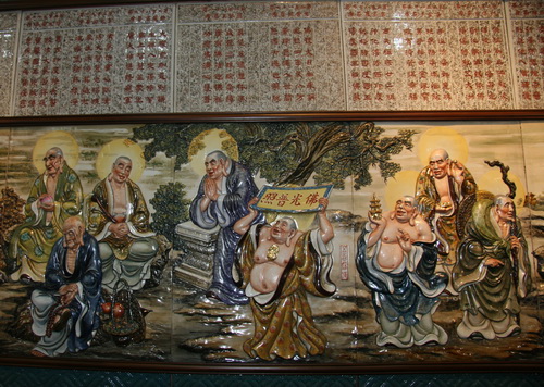世界上最長(zhǎng)的高溫陶瓷浮雕壁畫《五百羅漢圖》(部分)。