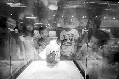 1日上午,新中國成立以來景德鎮(zhèn)陶瓷藝術(shù)展在福州市博物館開展。此次展出的109件(套)陶瓷藝術(shù)品均來自景德鎮(zhèn)陶瓷館館藏珍品,其中不乏7501毛澤東專用瓷等珍貴瓷器。上圖為觀眾們爭相觀看粉彩繡紅旗人物瓷瓶。